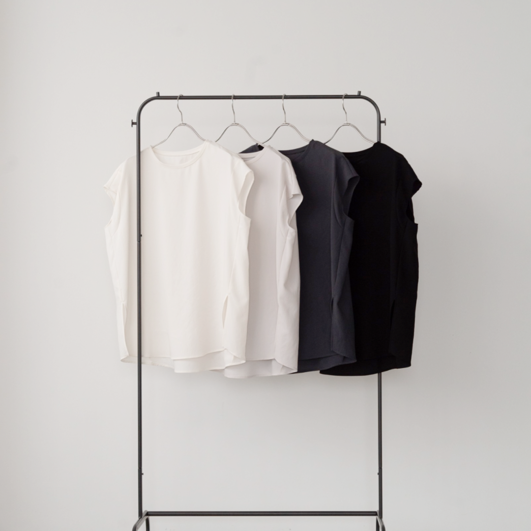Japanese fabric. This fabric is woven with 40/2 yarn and a 28-gauge stitch. Typically, jersey fabrics using 40/2 yarn are woven with 22 or 24-gauge stitches, so the 28-gauge weave is much more challenging. However, this gives the fabric a unique crispness. The mercerizing process further enhances its glossy, high-quality texture.