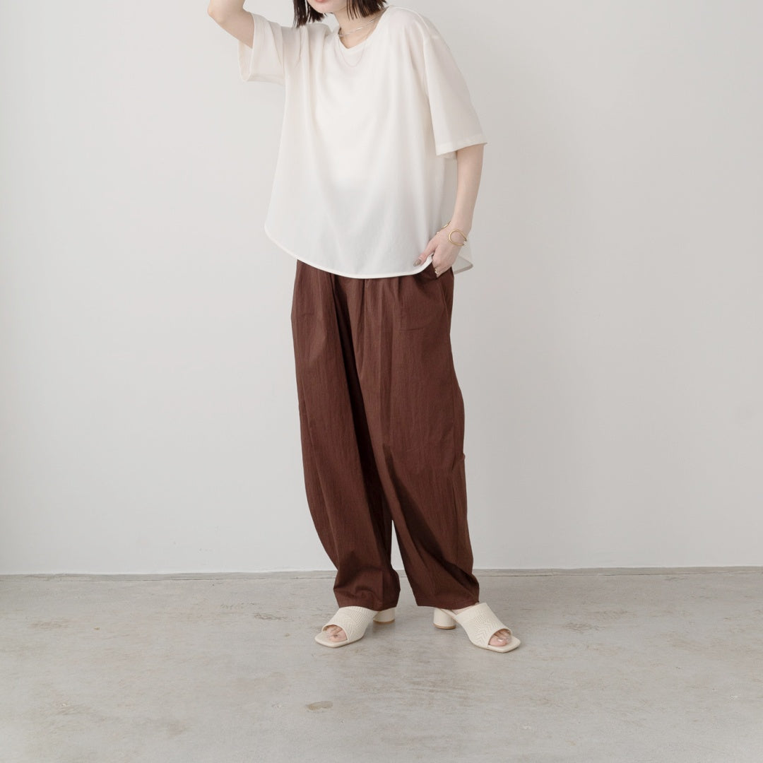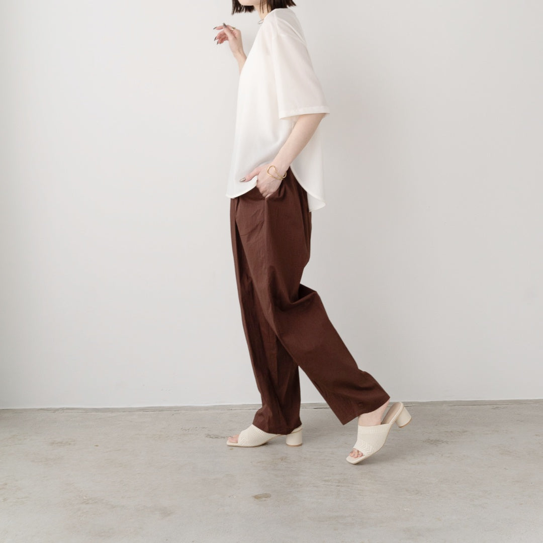 Japanese fabric. Made with cationic-dyeable yarn to create a m?lange look. The fabric has a fresh appearance and feel, is thin, lightweight, durable, and offers excellent breathability. It is fade-resistant, abrasion-resistant, and has high strength.