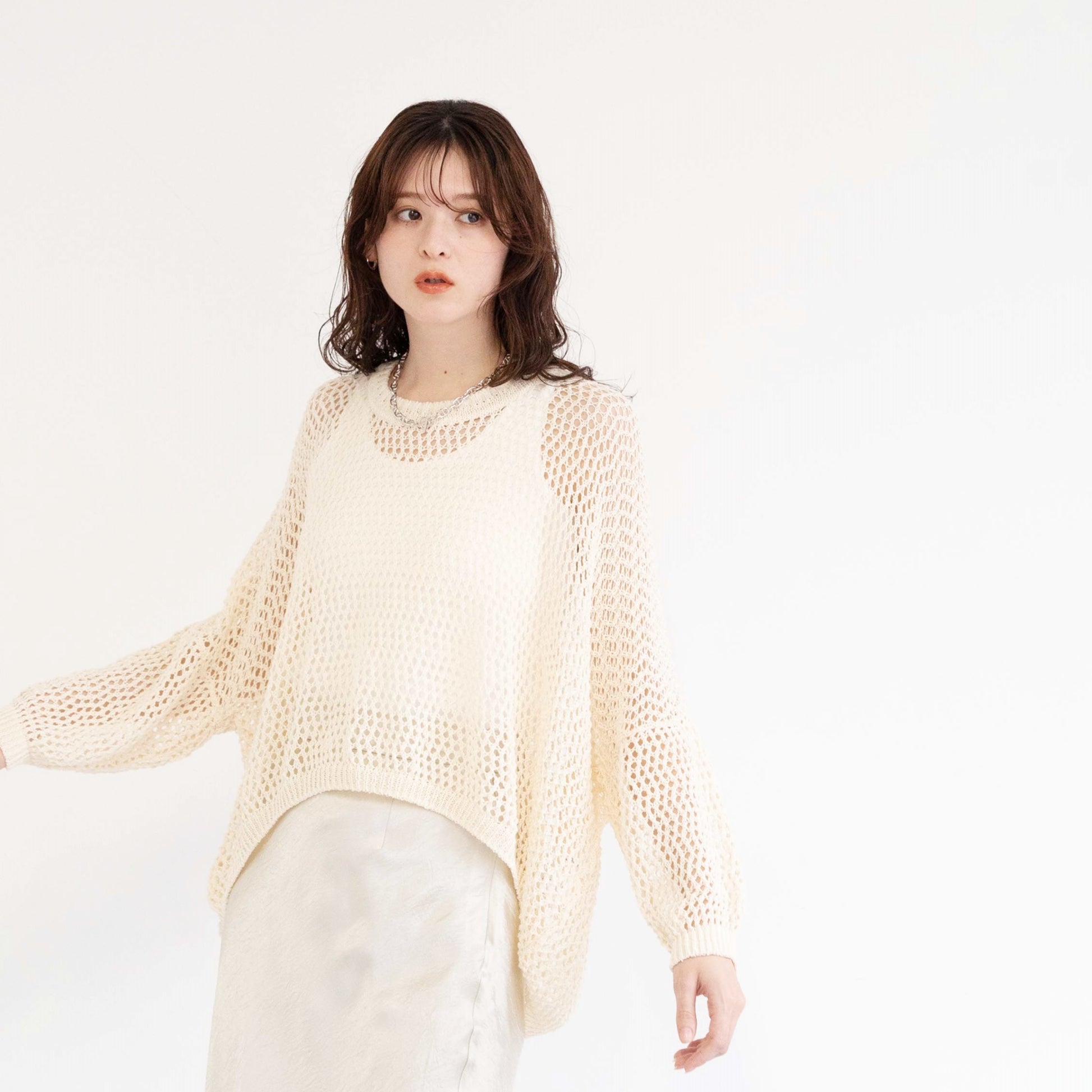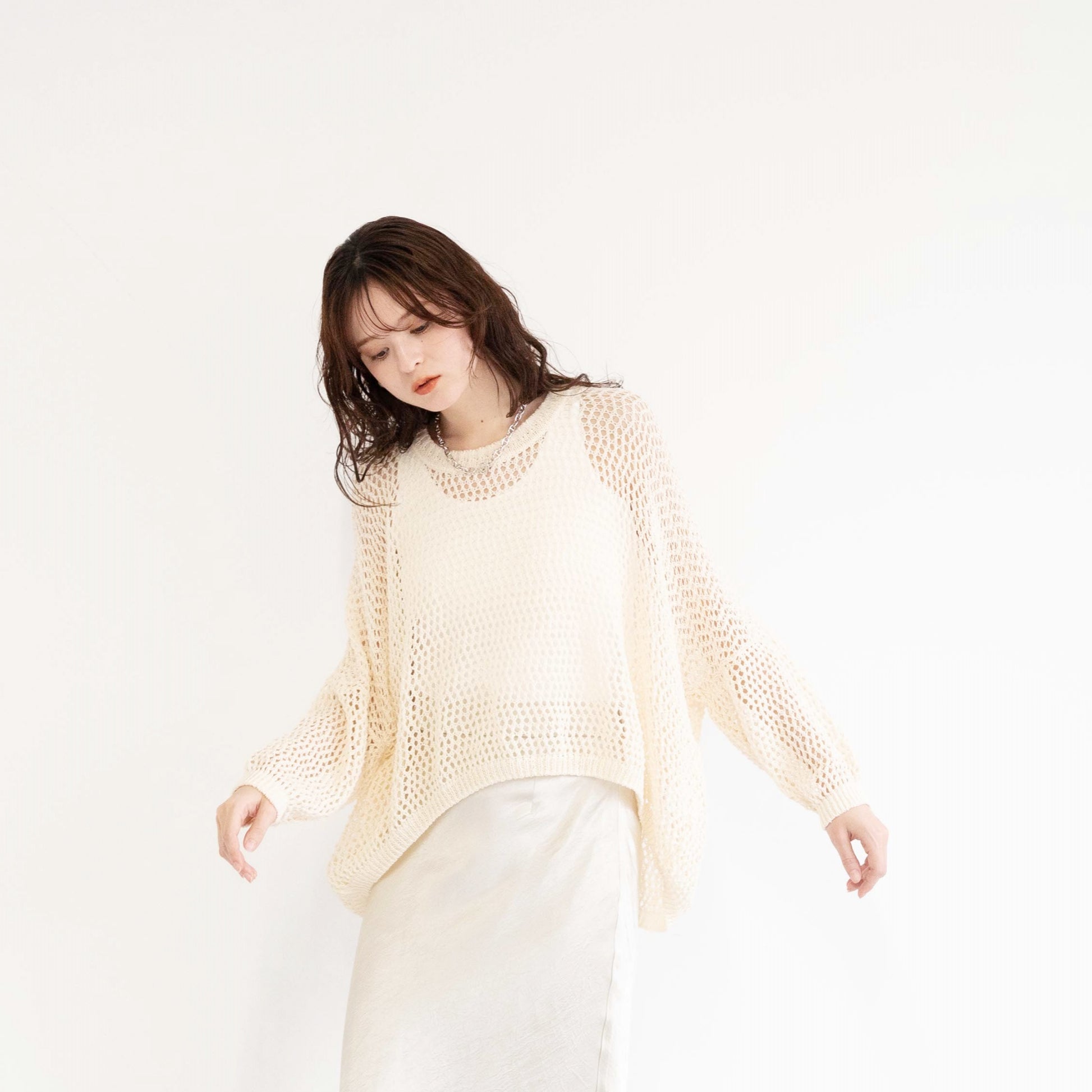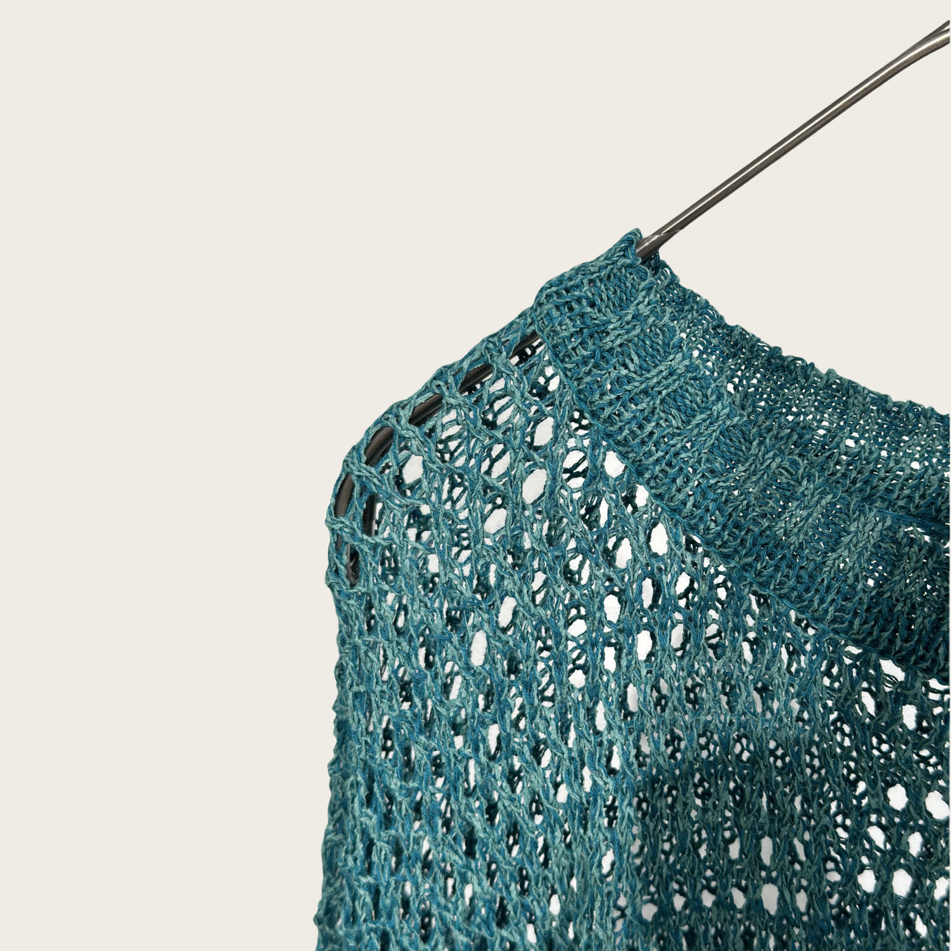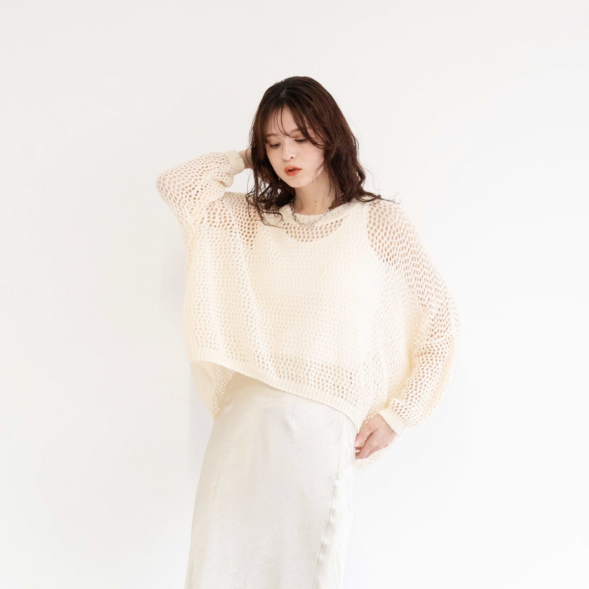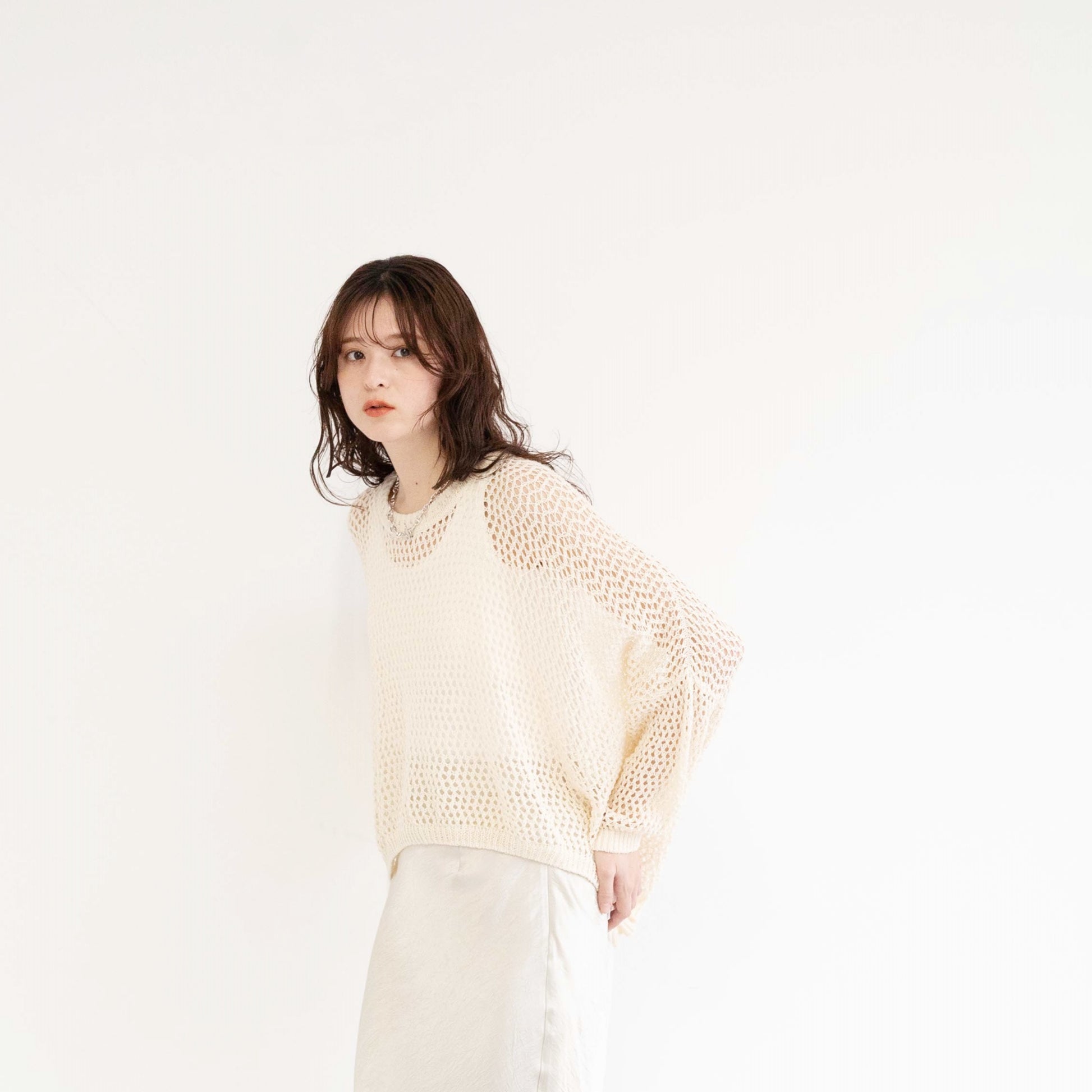 TUMUGI yarn and combed cotton mesh knitted top