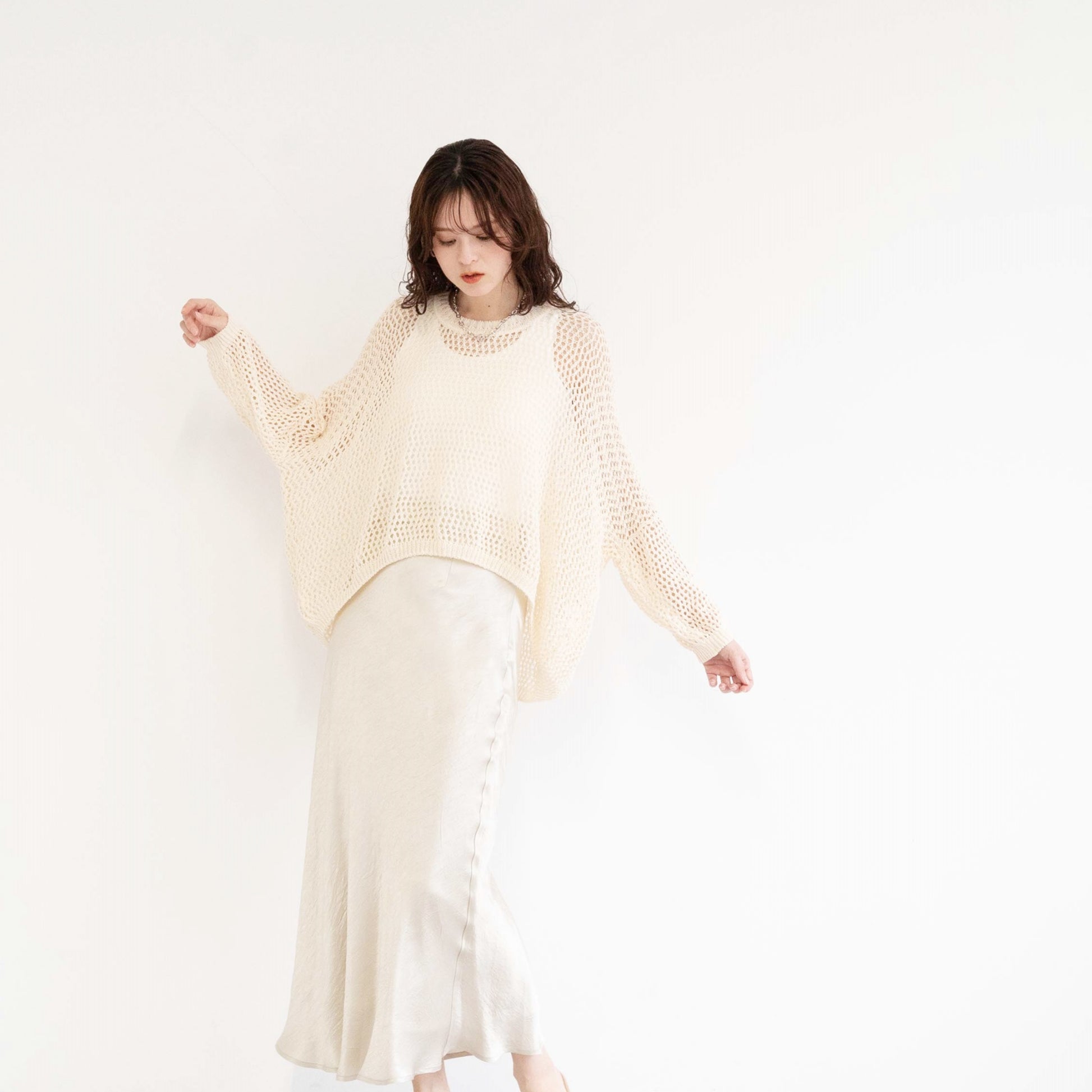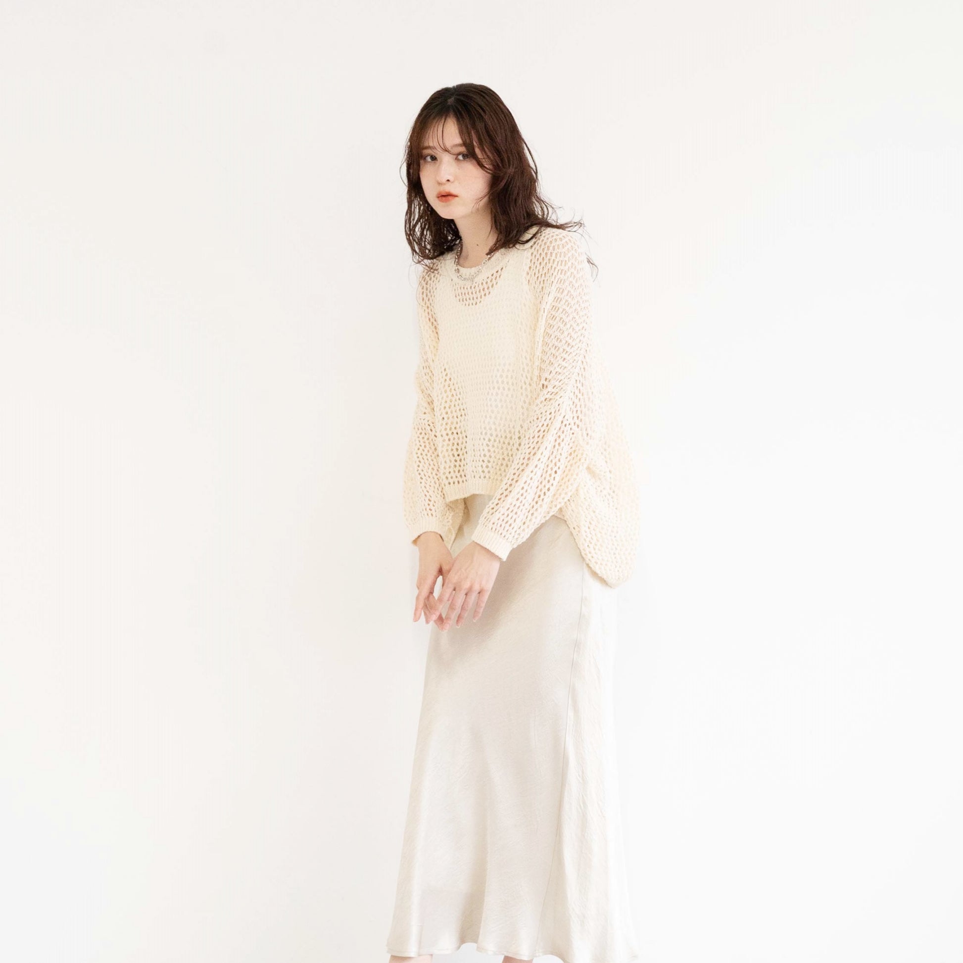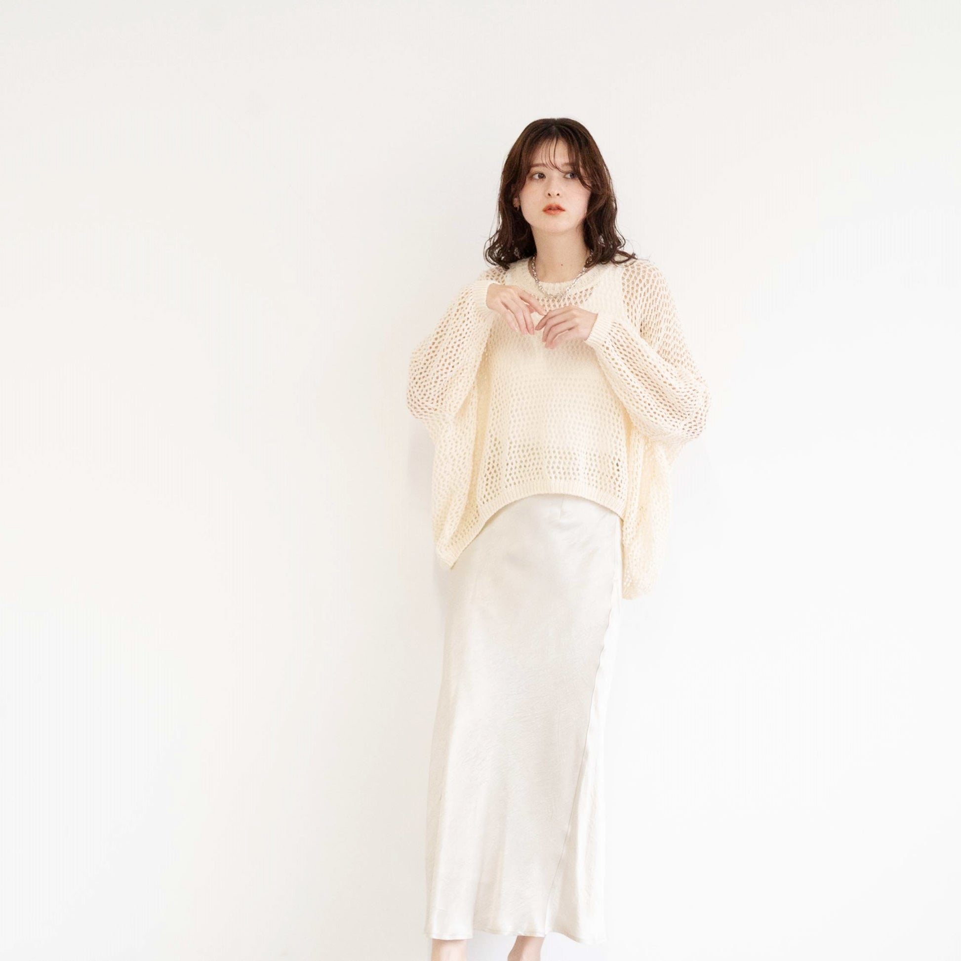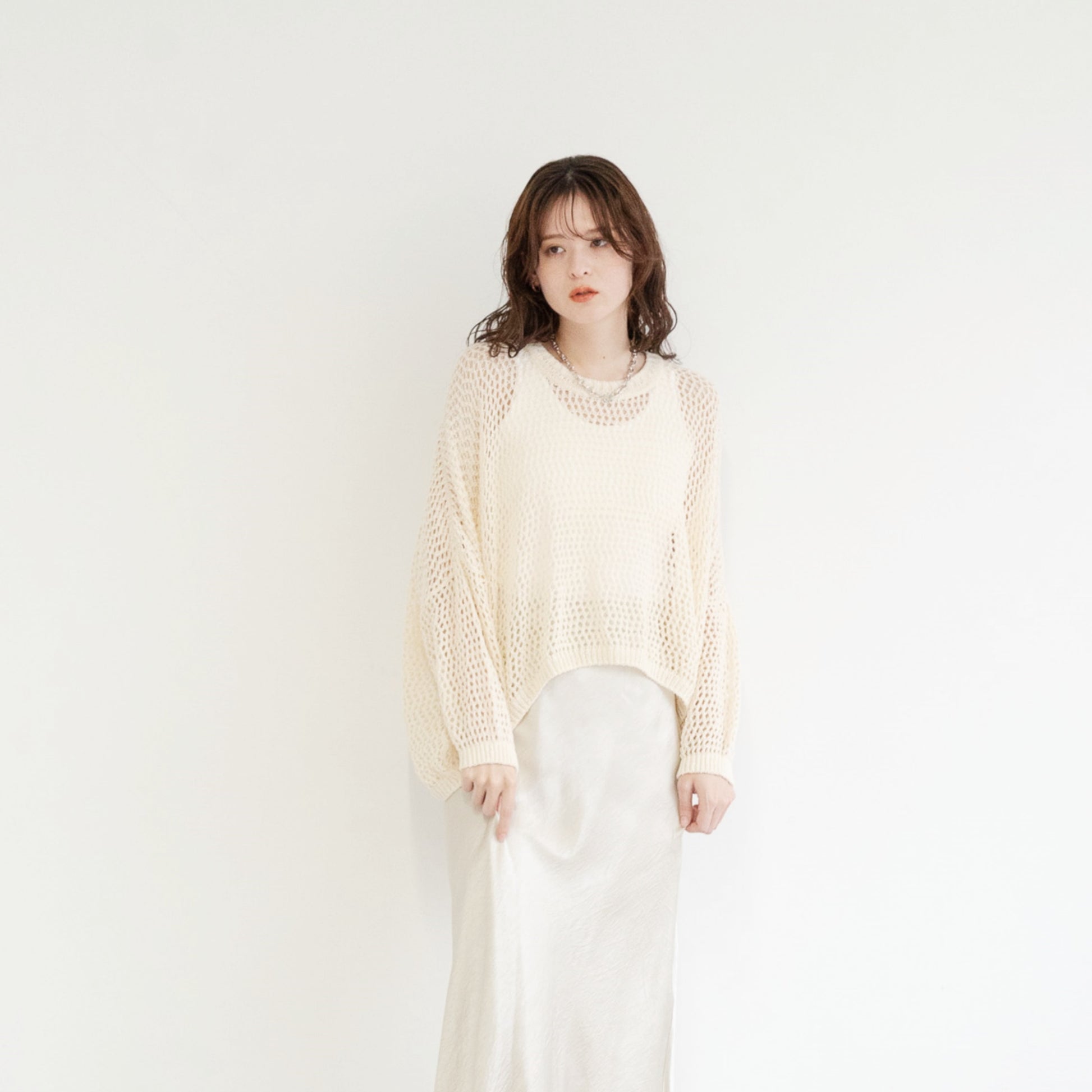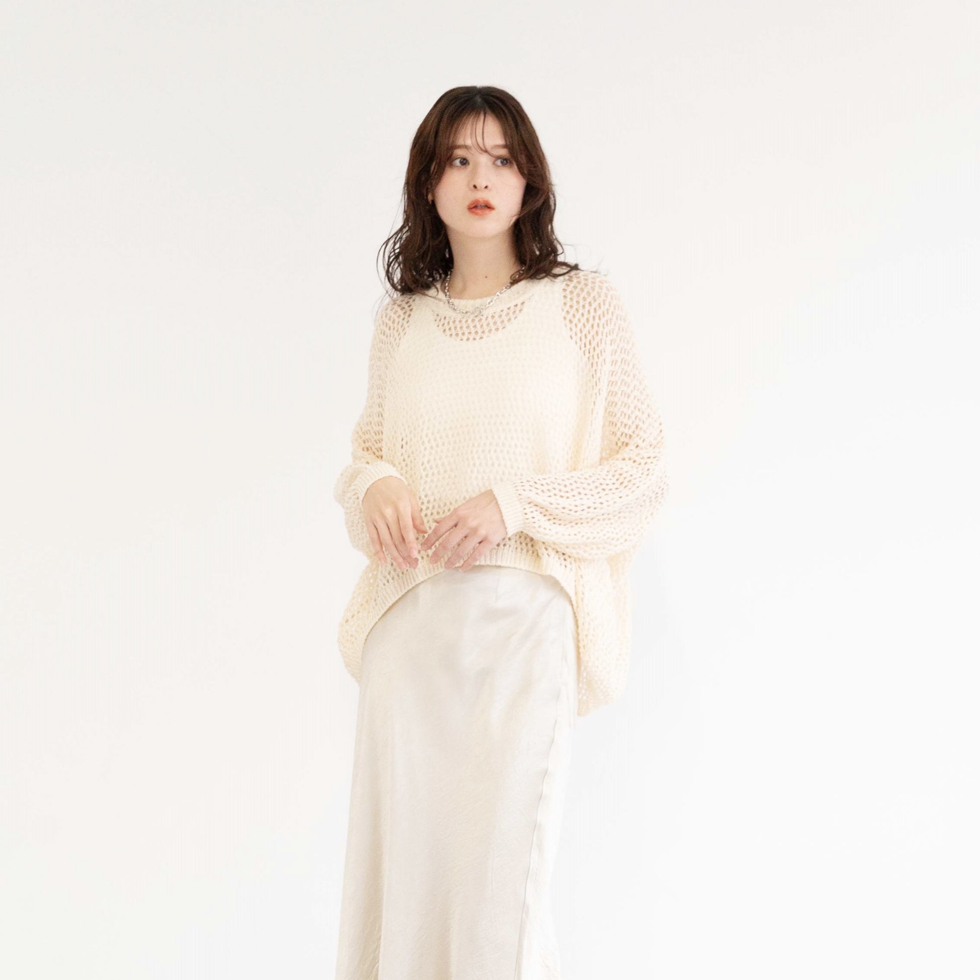 TUMUGI yarn and combed cotton mesh knitted top