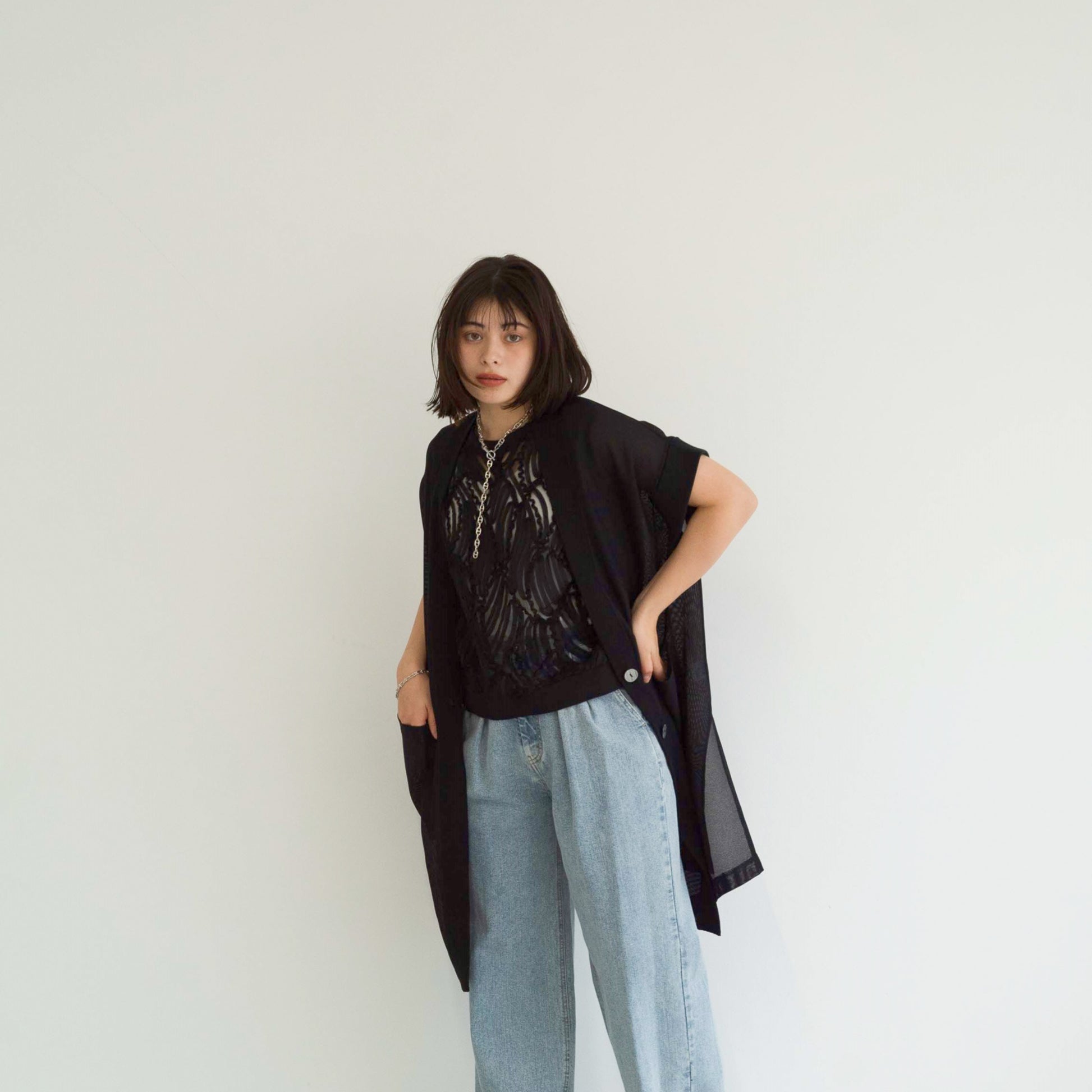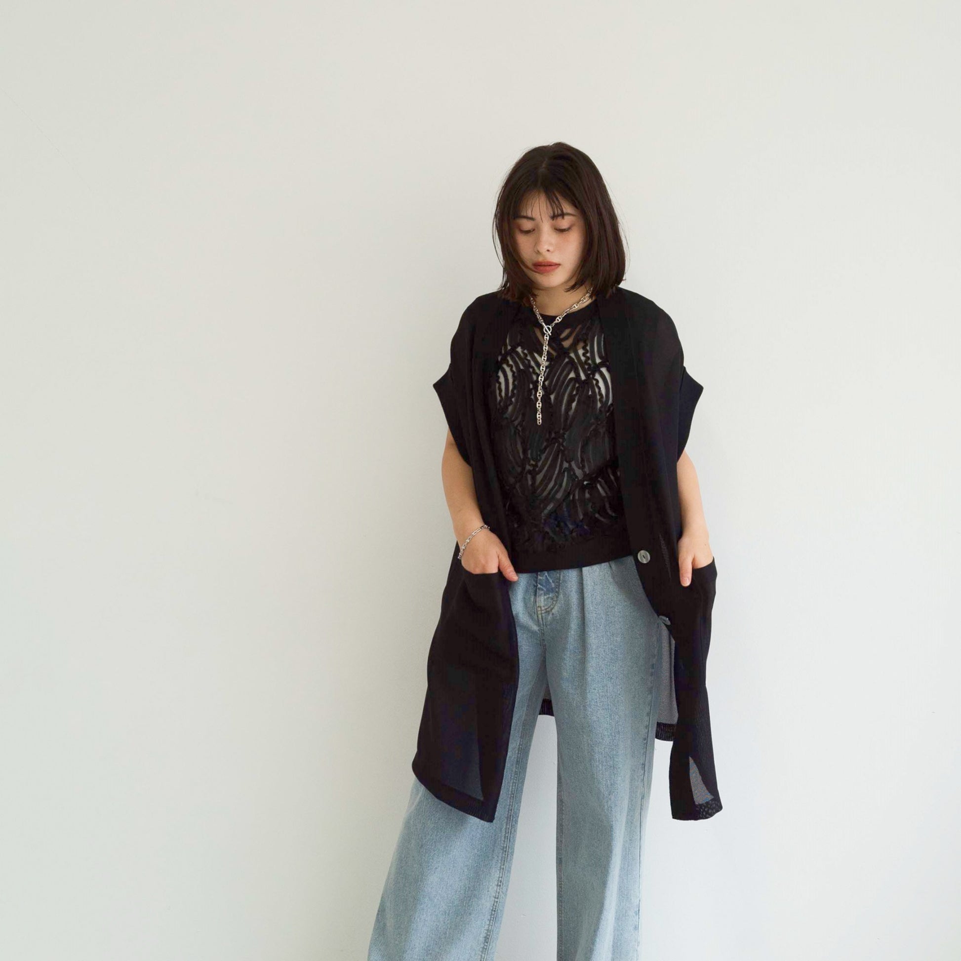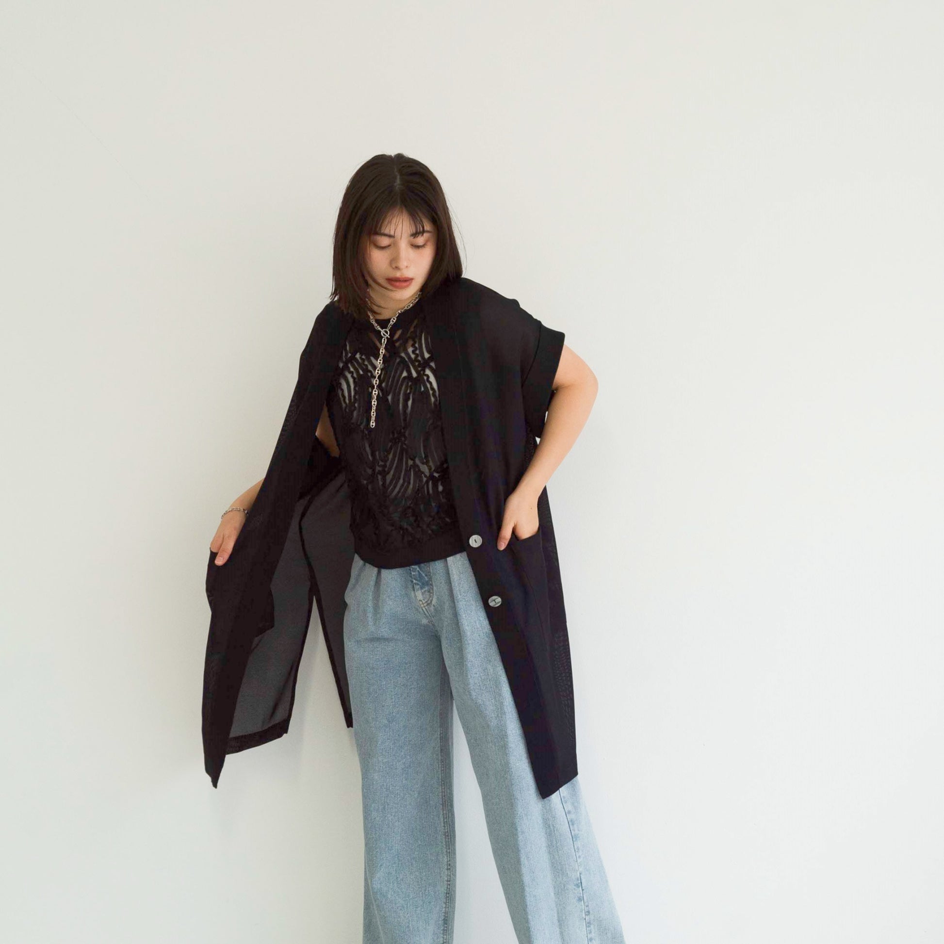 full-knit mesh sleeveless cardigan vest