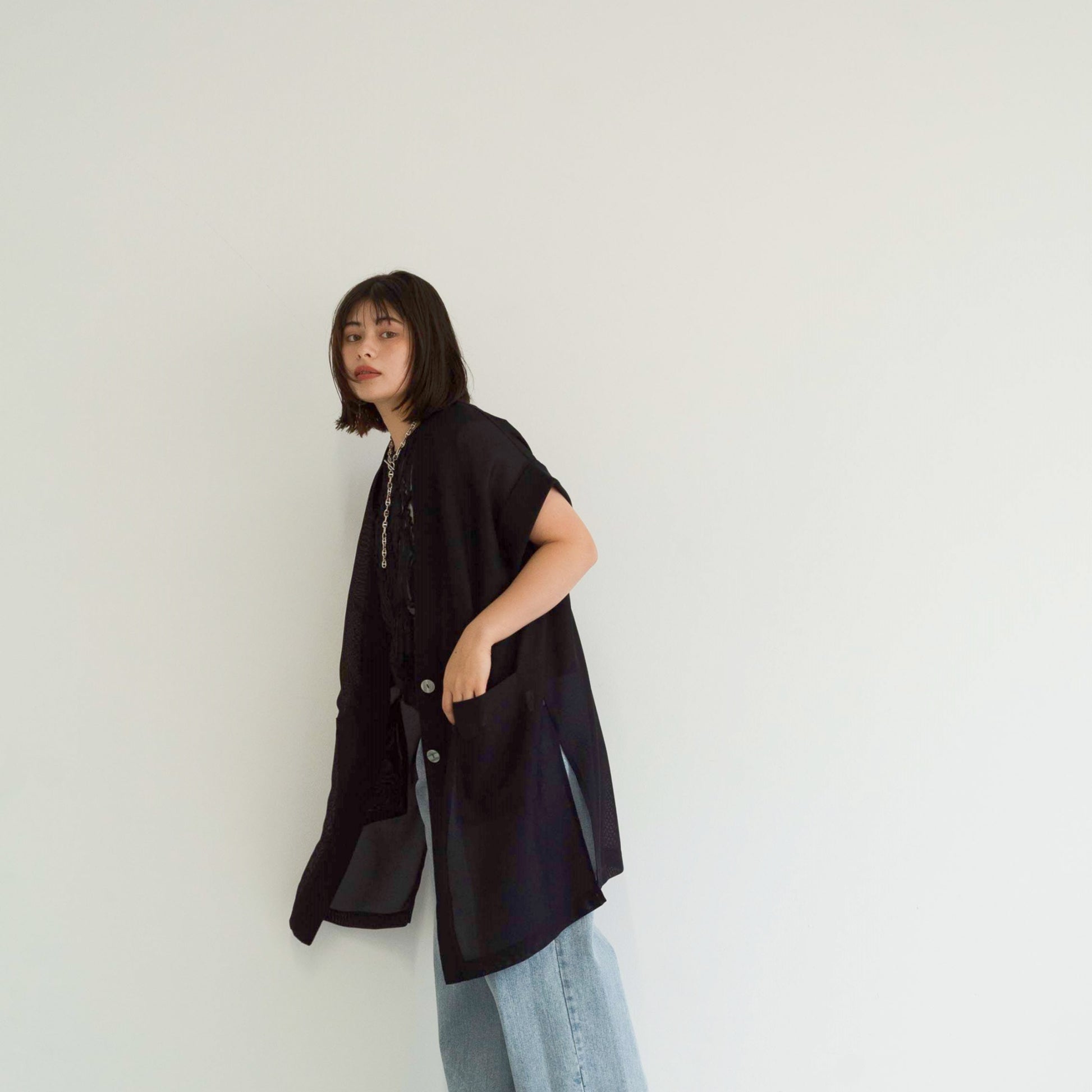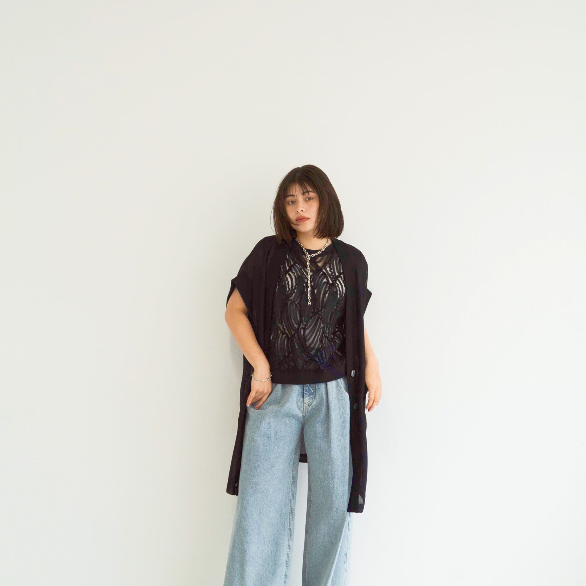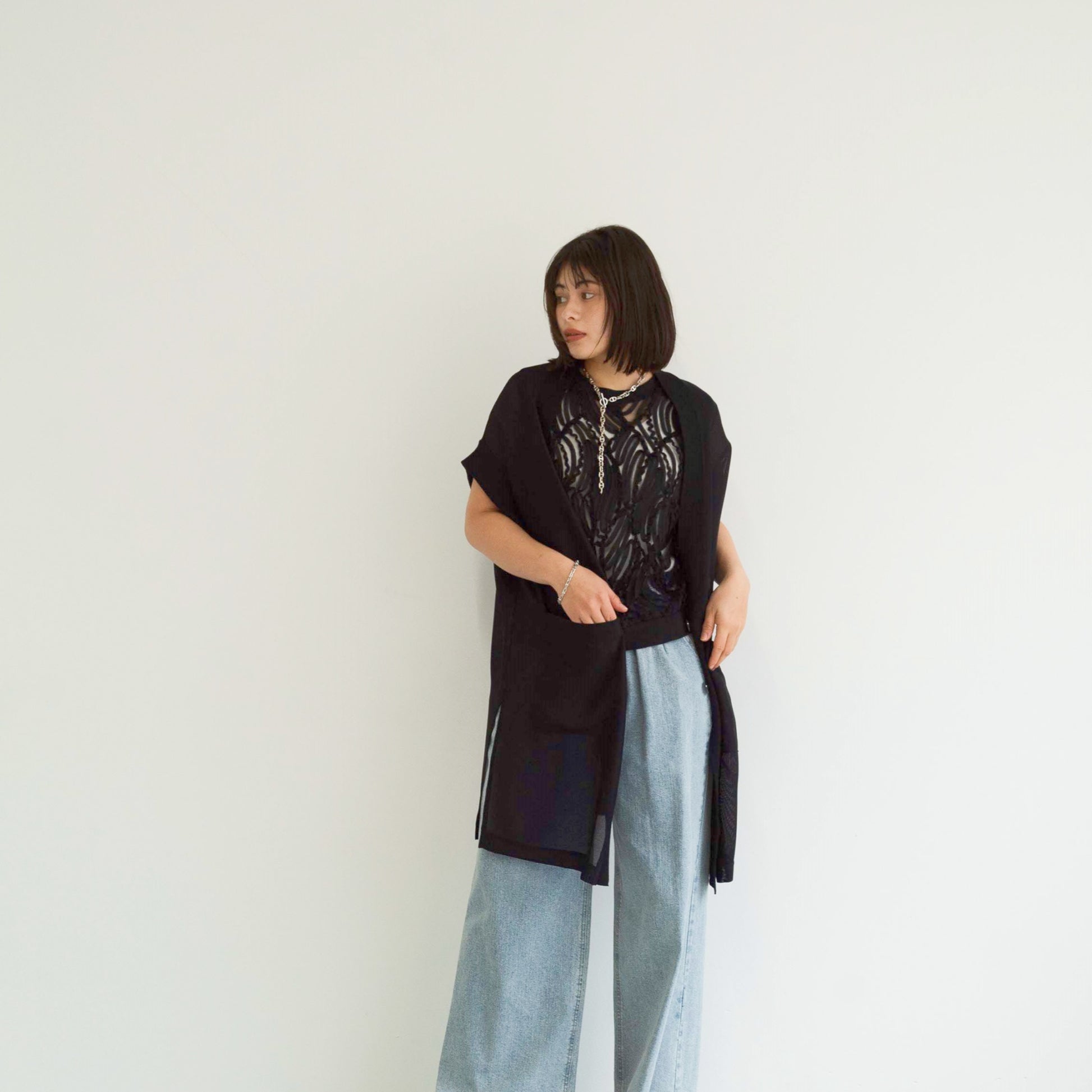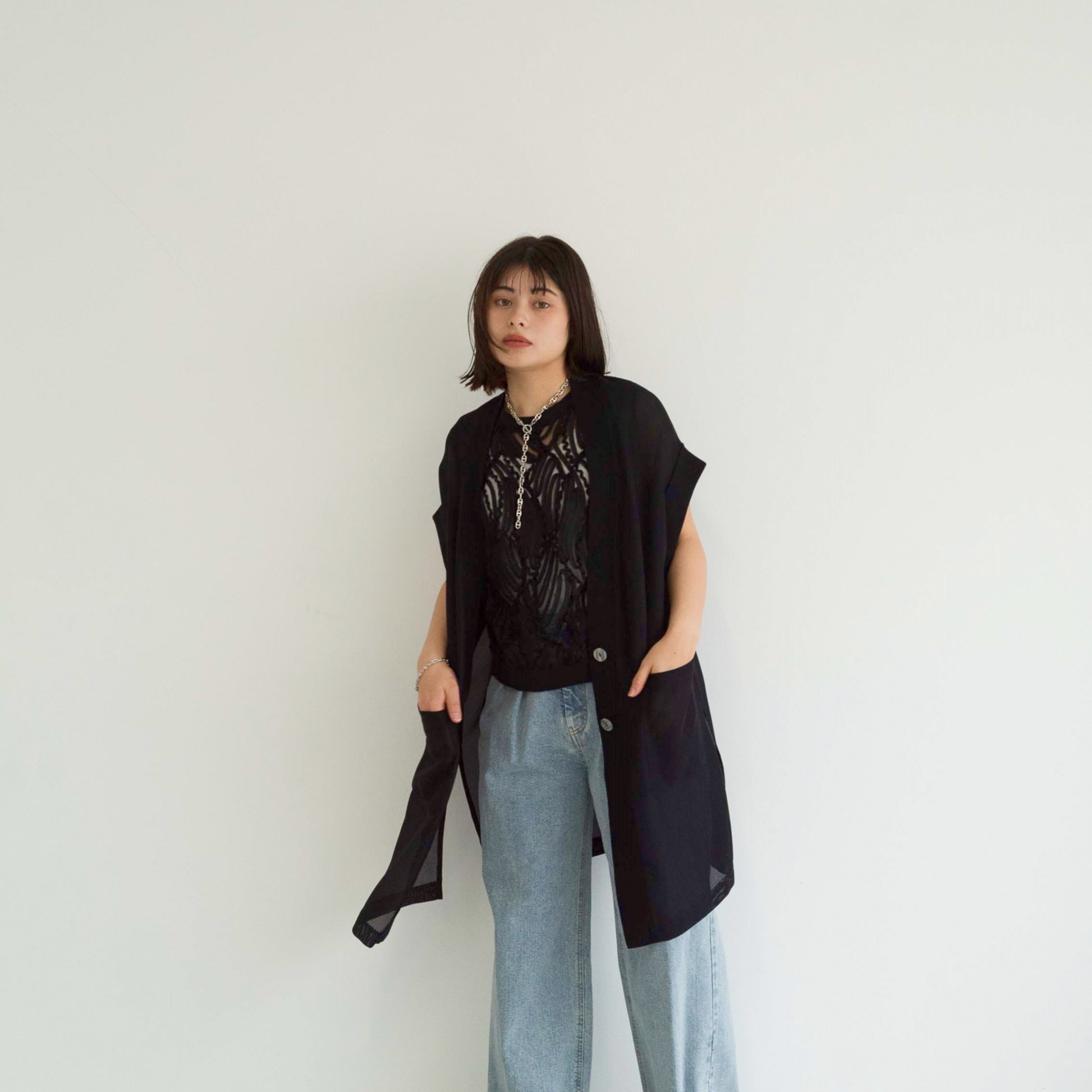 full-knit mesh sleeveless cardigan vest