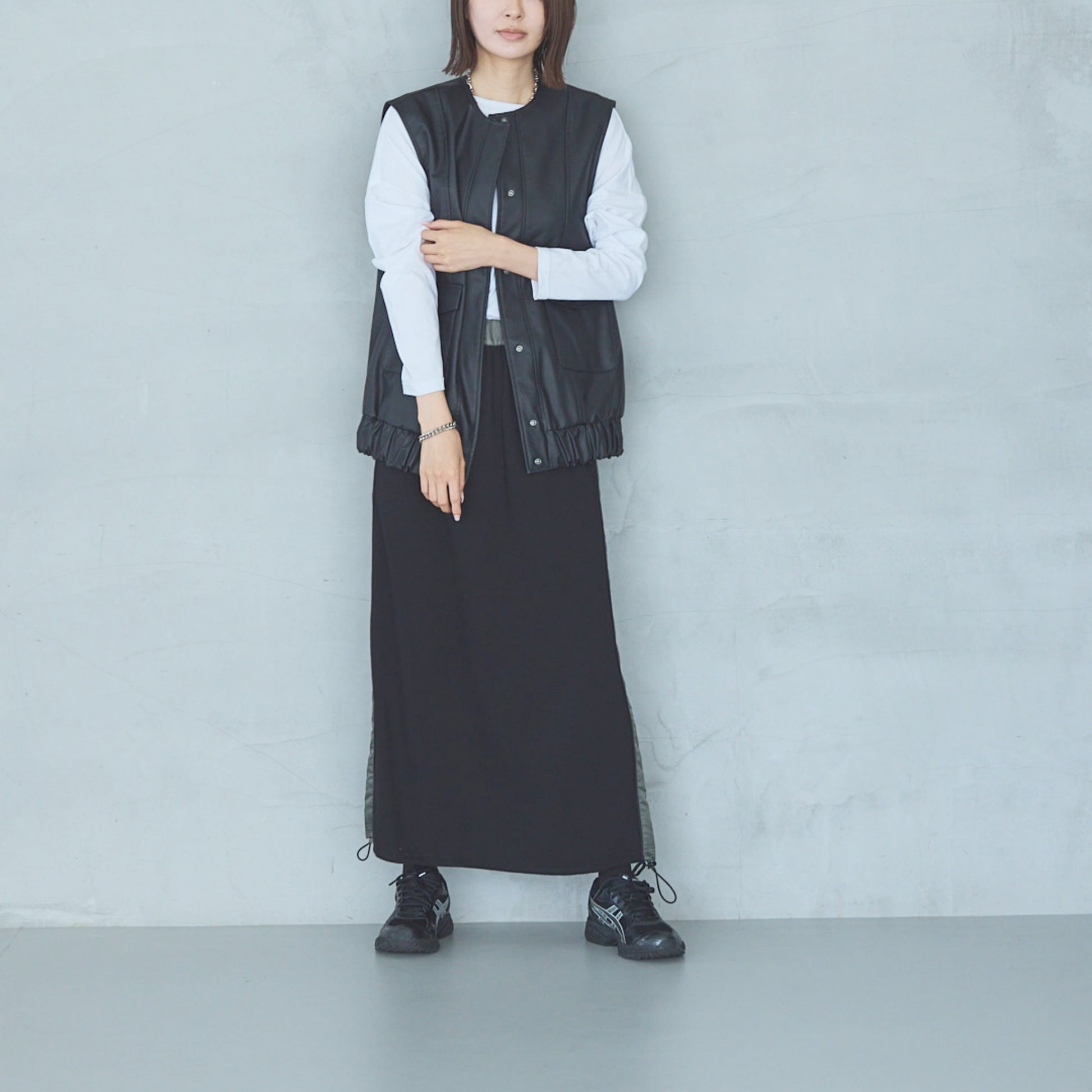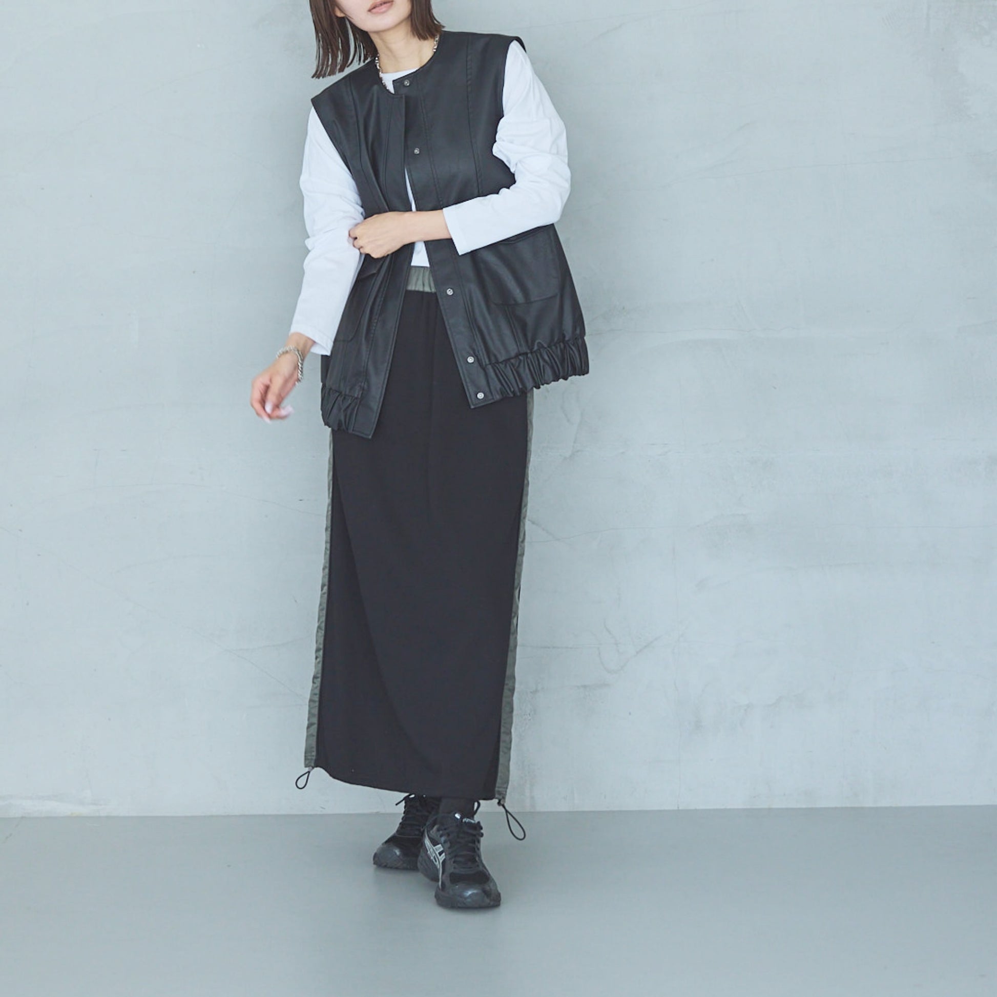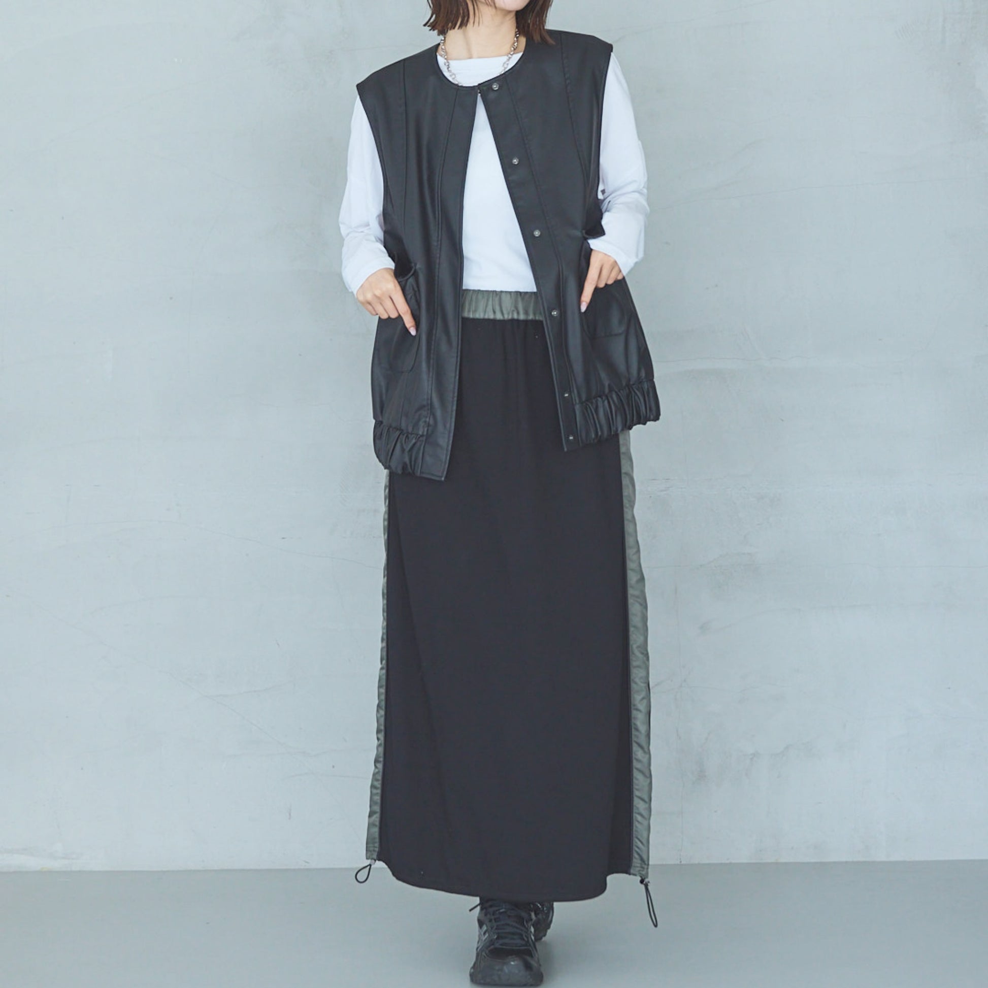Model: 170 cm, 54 kg. 160 cm, 48kg.